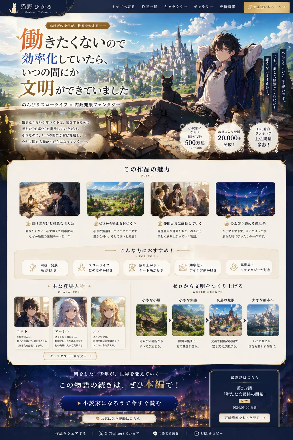 働きたくない、退屈したくない――そんな登場人物が紡ぐ物語を、のんびり書いています。 代表作「働きたくないので効率化していたら、いつの間にか文明ができていました」を小説家になろうで連載中。 次回作「辺境令嬢と、退屈知らずの執事」執筆中(公開…